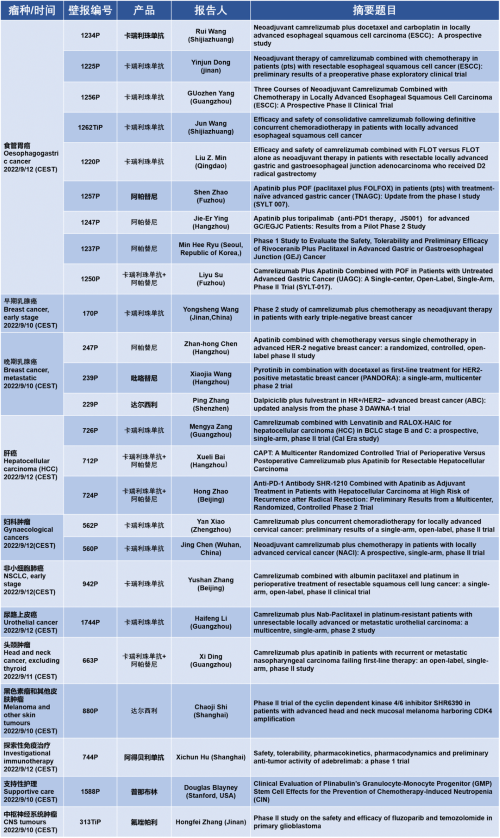 作为从事创新和高品质药物研发的国际化制药企业,金年会金字招牌诚信至上医药的研究成果在2022 ESMO大会上还收获了25项壁报形式的报告。其中,食管胃癌领域共有9项研究入选,研究的方案主要是卡瑞利珠单抗或卡瑞利珠单抗联合阿帕替尼,通过与化疗或放化疗联用,新辅助治疗食管鳞癌或胃癌。2022年9月12日(CEST),让我们齐聚ESMO大会,共同领略食管胃癌研究领域的学术盛宴。此外,金年会金字招牌诚信至上医药达尔西利、吡咯替尼、阿得贝利单抗等创新药还有4项乳腺癌研究、3项肝癌研究及其他领域的9项研究都将会以壁报展出,让我们共同期待!
